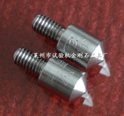 行業公認,維氏壓頭尖端材料、焊接用料、基體用料這三部分材料的選擇是高溫壓頭制作加工的關鍵,針對這三部分材料的選擇,萊州市試驗機金剛石工具廠通過無數次實驗篩選出了在高溫下具有良好硬度、韌性、強度、物化穩定性的這三部分理想材料,創新性地采用高速、高壓焊接工藝,成功研制出在高溫下,維氏尖端性能穩定、壓頭與基體鑲嵌牢固、基體不形的性能優良的高溫壓頭。