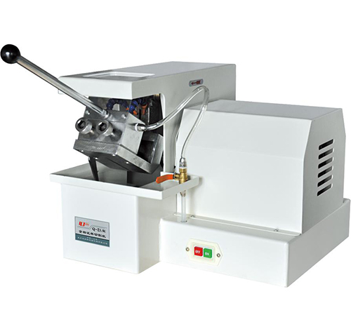 本機利用高速旋轉的薄片砂輪來截取金捆試樣,適直切割較硬的金屬材料,本機有冷卻裝置,用來帶走切割時所產生的熱量,避免試樣過熱而改變組織。